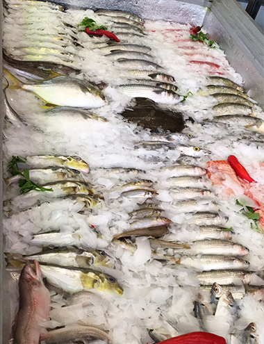在海鮮市場(chǎng)主要在海鮮上鋪一層冰,是海鮮溫度降低,起到保鮮作用